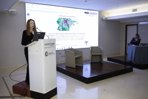 Il convegno è proseguito con l’intervento di Rossana Corrado, architetto urbanista ed esperta di pianificazione urbana e PNRR. Nel suo contributo “Verso il nuovo Piano del Verde e della Natura di Roma Capitale”, Corrado ha inquadrato il futuro piano all’interno dei principali trend europei, evidenziando l’importanza di una pianificazione integrata, chiara e strutturata. Successivamente, l’ingegnere ambientale Michelangelo Dabbieri ha affrontato il tema della sostenibilità ambientale in ambito urbano. Ha illustrato l’evoluzione dell’approccio alla sostenibilità negli ultimi vent’anni, soffermandosi su economia circolare, gestione delle risorse, consumo di suolo e indicatori di misurazione legati all’Agenda 2030 delle Nazioni Unite.